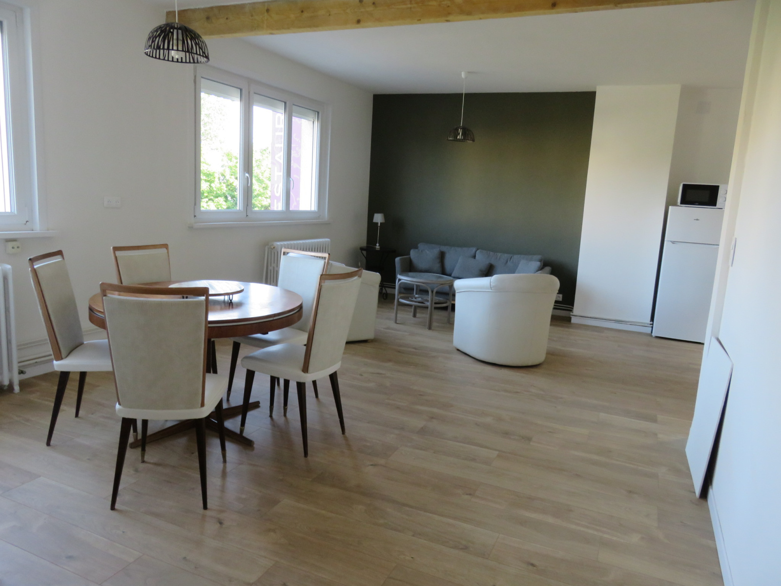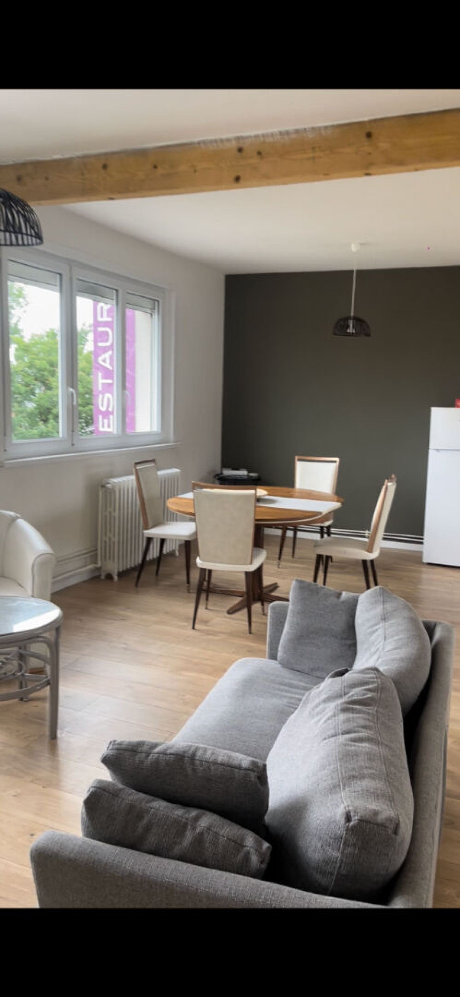Appartement au 1er pour une collocation de 5 personnes. Agréable espace commun offrant : un séjour, salon, cuisine aménagée et équipée, buanderie commune. Il y 5 chambres privatives avec salle de bains et wc privatifs. Loyer 350.00 € + forfait de charges de 100.00 € soit 450.00 € charges en provision incluse (eau, électricité, chauffage, Wifi) Honoraire d'agence 200.00 € dont 50.00 € d'état des lieux.