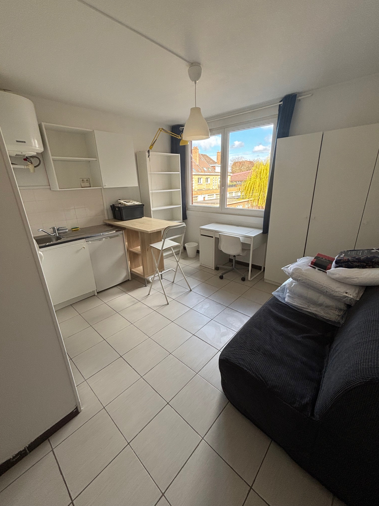 Proche université et des commerces à Dunkerque 8 rue Clemenceau 59140 dunkerque ~ Studios équipés et meublés de 18m² : Pièce principale avec lit et couette, bureau, table de repas, chaises, cuisine aménagée et équipée (plaques, frigo, micro-ondes, kit vaisselle), salle d'eau avec WC, kit ménage. Cuisine commune au 4 chambres. Loyer 330.00 € + forfait de charges de 120.00 € soit 450.00 € charges en provision incluse (eau, électricité, chauffage, Wifi). Depôt de garantie : 660.00 € Honoraire d'agence 200.00 € dont 50.00 € d'état des lieux. Contacter Cyril Castelin au 06 50 52 53 75.