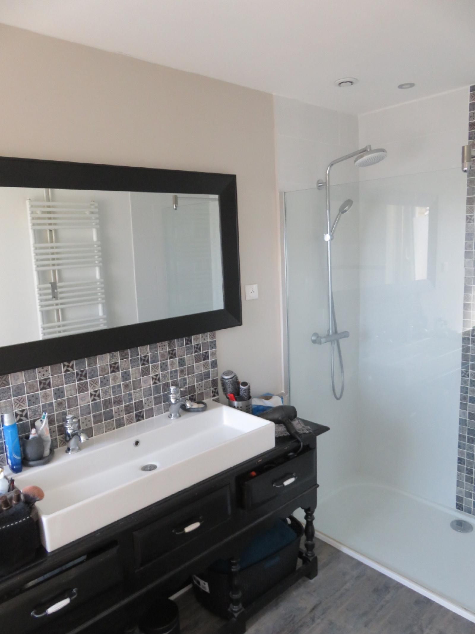 Maison avec beaucoup de charme. Entrée, Séjour, Salon, cuisine aménagée et équipée, 3 chambres, dressing, 2 salle de bains, petite terrasse, cave. Chauffage gaz, pas de travaux à prévoir.